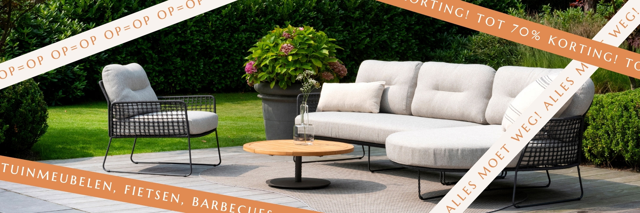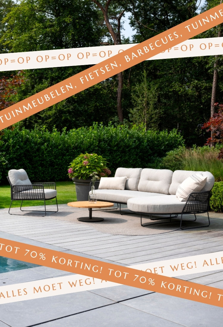 ✔ Alles onder één dak: tuinmeubelen, tuinbergingen, barbecues, verlichting én fietsen