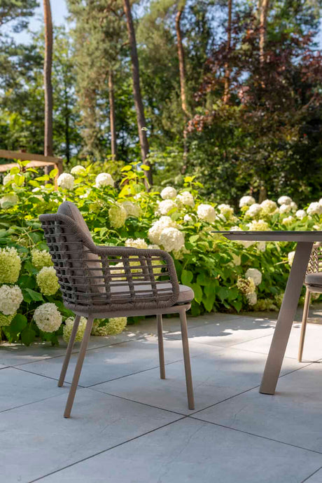 Taste 4SO Puglia dining stoel + Donato tafel latte met geprint keramiek tafelblad 160 Ø cm