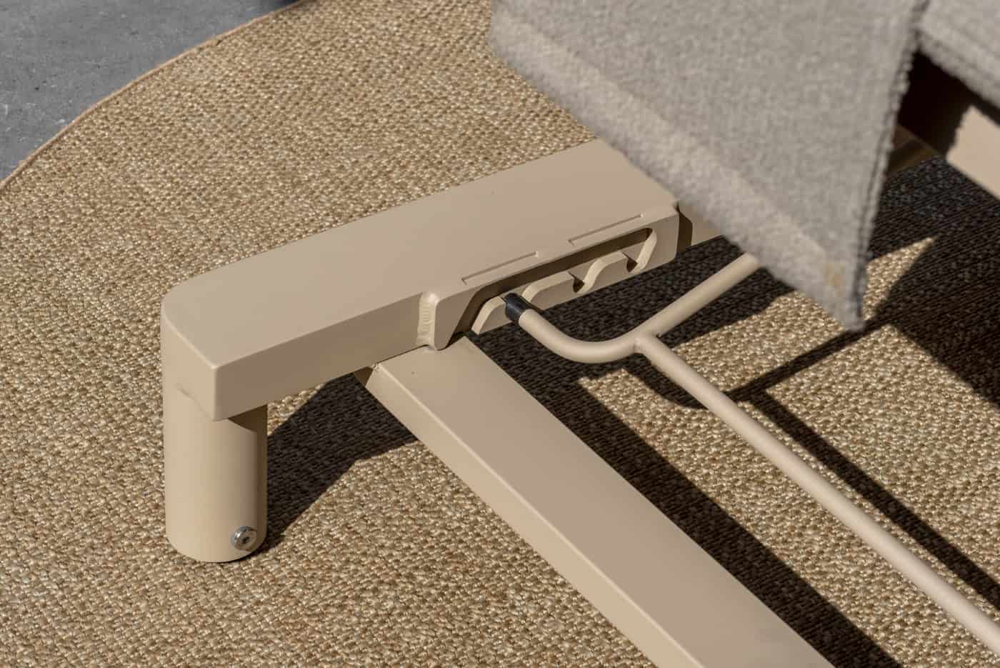 Inclusief kussen en hoofdsteun: Het ligbed wordt geleverd met een comfortabel kussen in boucle stof, kleur clay met een verstelbare hoofdsteun, zodat u altijd de perfecte ondersteuning kunt vinden voor uw rug en nek.