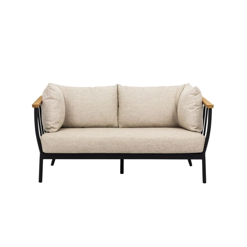 De Condor lounge heeft een strakke, stoere uitstraling. Het frame is gemaakt van matzwart gepoedercoat aluminium, wat zorgt voor een moderne en robuuste look. De BEE WETT® kussens hebben een grove weefstructuur, maar voelen verrassend zacht aan. De elegante rondingen in de rugleuning en het gebruik van naturel teakhout in de armleuningen voegen een warm, natuurlijk element toe aan het ontwerp.