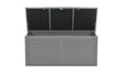- Kleur: De box heeft een stijlvolle donkergrijze kleur met zwarte accenten, wat zorgt voor een moderne uitstraling die goed past in diverse tuinomgevingen.