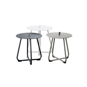 De Suns Meseta ronde bijzettafel is een prachtige verschijning en heeft een sterk aluminium frame afgewerkt met een hoogwaardige powder coating en beschermpootjes onderaan het tafeltje. De afmetingen van de Meseta ronde bijzettafel zijn 44x44cm. Het gaat hierbij over het rechter bijzettafeltje op de foto.