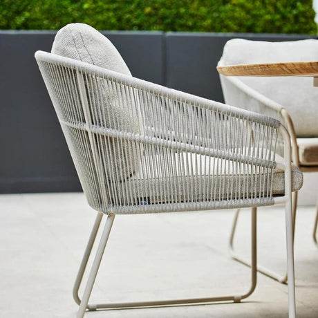 Suns Noli dining stoel, Camel sand frame en camel sand rope met naturel gravel kussens