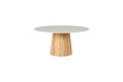 Suns Sorolo low dining tafel Ø160cm, teak base-terazzo light taupe neolith blad