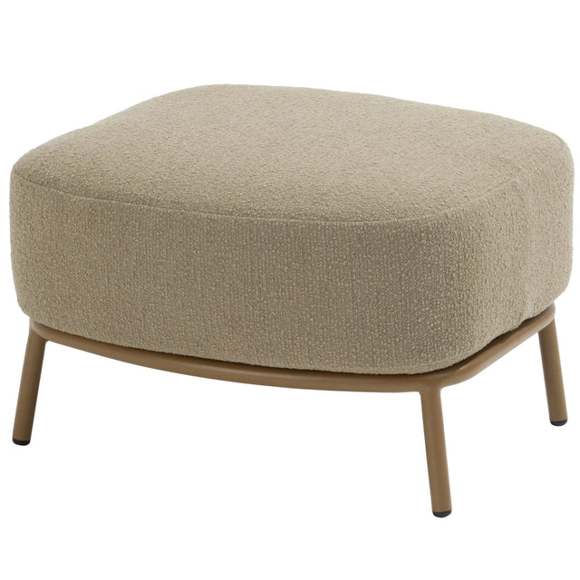 Geef je loungehoek een prachtige upgrade met de Biarritz voetenbank van 4 Seasons Outdoor. Deze stijlvolle voetenbank combineert een warm amberkleurig aluminium frame met elegant gevlochten rope–werk, wat zorgt voor een luxe, uitnodigende uitstraling. Het royale all-weather kussen maakt het plaatje compleet en nodigt uit tot ontspannen: of je nu je voeten hooglegt of een extra zitplek creëert. Het gepoedercoate aluminium frame is licht van gewicht, roestbestendig en perfect geschikt voor buitengebruik. Het rope-vlechtwerk is duurzaam en geeft een luchtige, ambachtelijke touch. Het kussen is bekleed met Olefin-stof: kleurvast, vuil- en waterafstotend – ideaal voor jarenlang buitenplezier zonder zorgen. Met de Biarritz voetenbank haal je niet alleen extra comfort in huis, maar ook een stijlvol element dat naadloos aansluit bij je lounge-setting. Ideaal voor die momenten waarop je echt even wilt ontspannen.