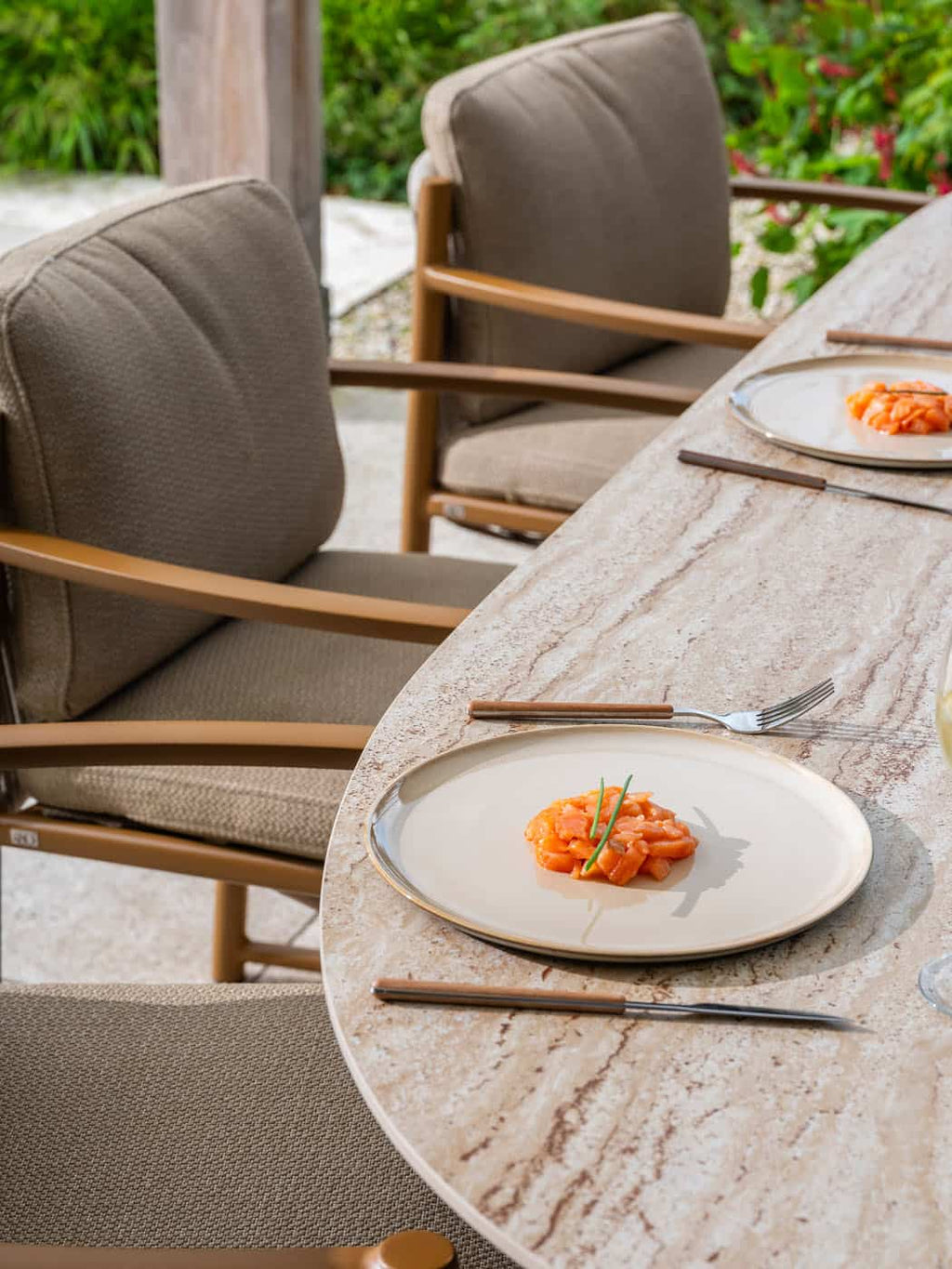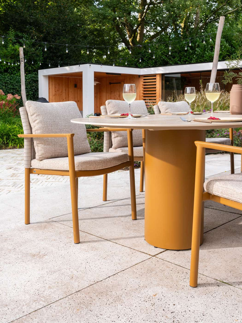 Het amberkleurige onderstel geeft de tafel een stijlvolle, moderne look die moeiteloos aansluit bij diverse tuinstijlen – van eigentijds tot mediterrane sferen. De Colorado is niet alleen een functioneel middelpunt voor buiten dineren, maar ook een echte blikvanger die je buitenruimte naar een hoger niveau tilt.