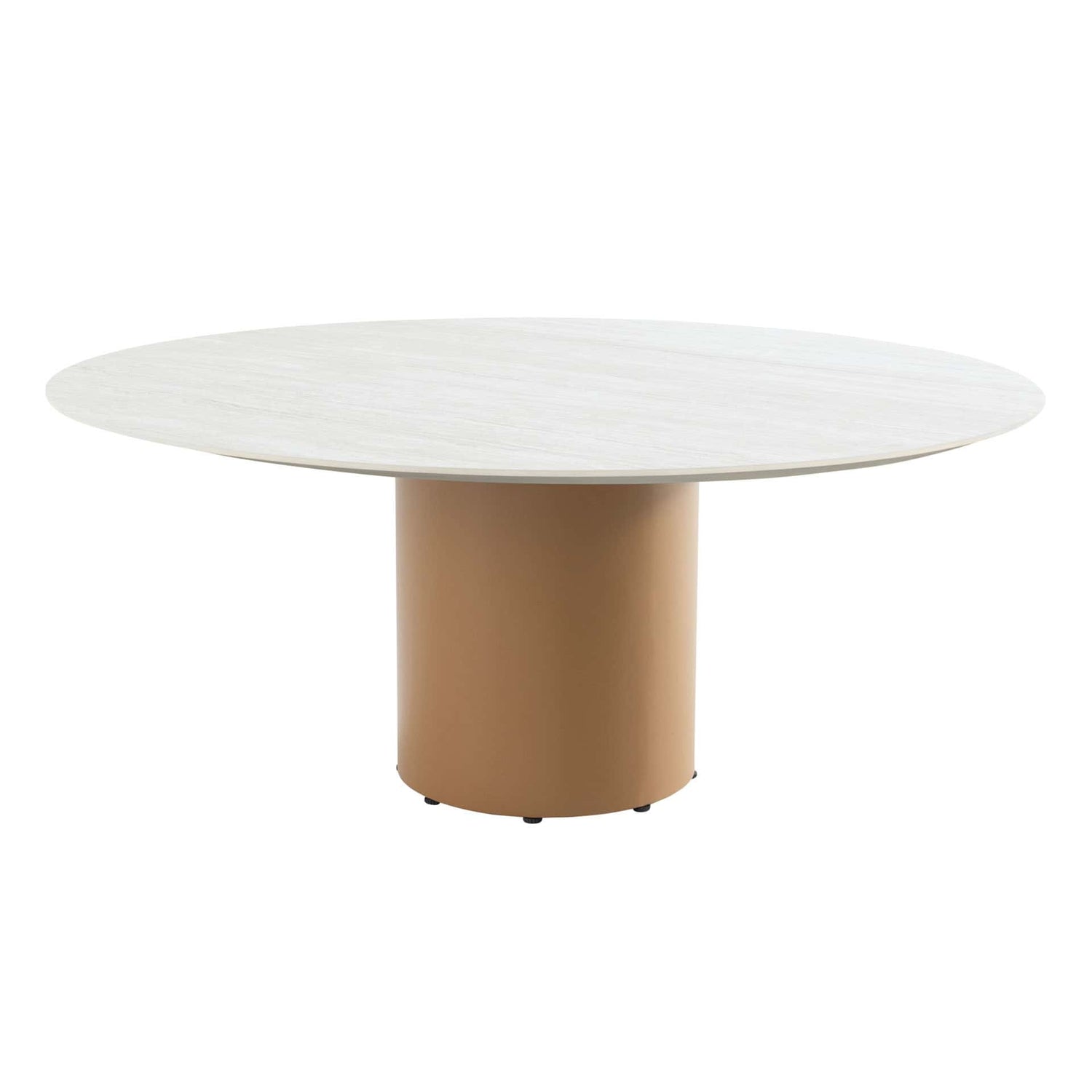 Colorado low dining Eettafel 160 cm Ø – Ceramic Travertin & Amber Frame