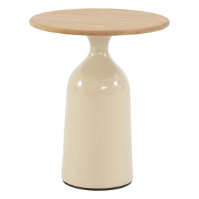 4 Seasons Outdoor June salontafel creme met teak tafelblad 45 cm Ø (H 55)