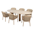 De Estate eettafel in Amber met een keramisch travertin blad van 240 × 105 cm is de perfecte partner voor deze stoel. Het royale tafelblad biedt comfortabel plek voor meerdere personen, terwijl de luxueuze uitstraling en de buitenbestendige materialen zorgen dat je jarenlang buiten kunt genieten.