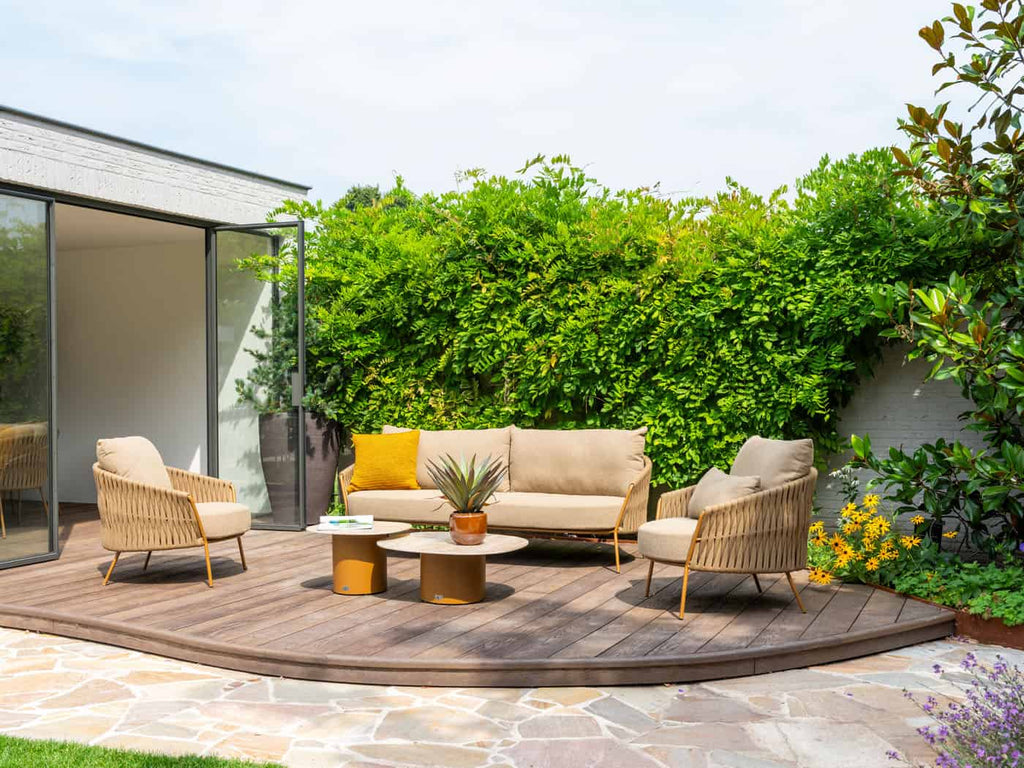 Onderhoudsarm: Dankzij de hoogwaardige materialen is de bank eenvoudig schoon te houden en geschikt om het hele seizoen buiten te blijven staan.