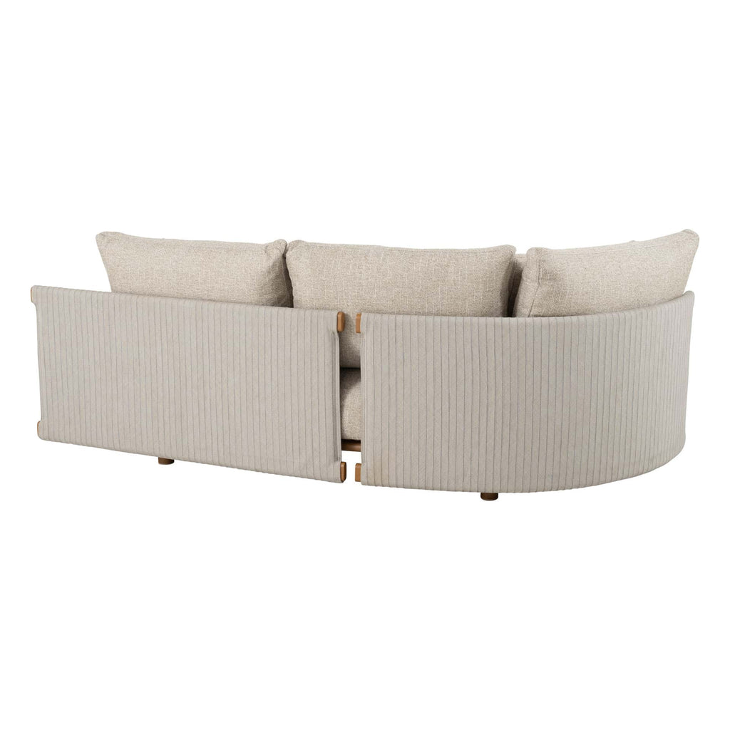 De Safina loungese combineert comfort en elegantie. Het gepoedercoate aluminium frame in warme Amber-kleur is gestructureerd met verfijnd aan elkaar gestikt rope, wat de bank een luxe en uitnodigende uitstraling geeft. Dankzij de all-weather kussens ervaar je optimaal zitcomfort, ideaal voor lange diners of ontspannen momenten buiten. De bank bestaat uit een 3-zits bank en een chaise lounge gedeelte.