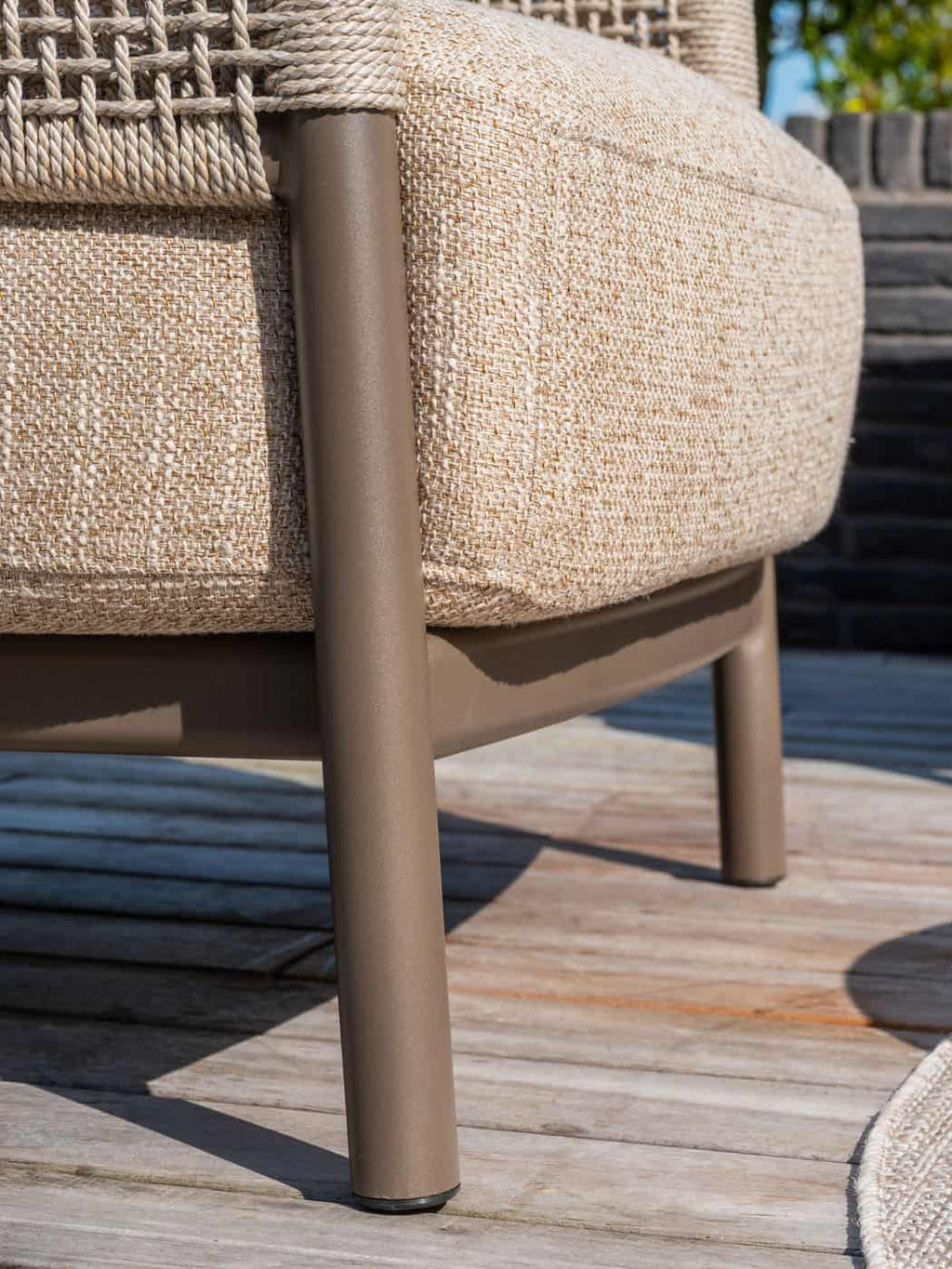 Elegant design: Warm aluminium frame gecombineerd met taupe kleurig rope geeft een moderne maar warme uitstraling.