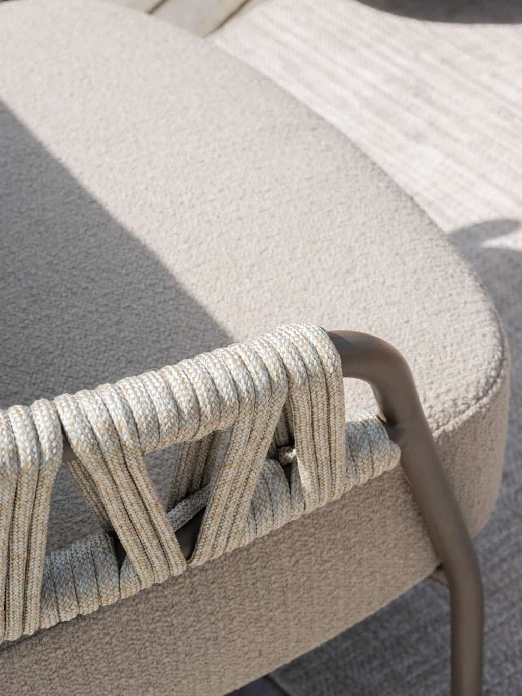 Elegant ontwerp: Terre-gekleurd aluminium frame met verfijnd rope; tijdloos, modern en uitnodigend.