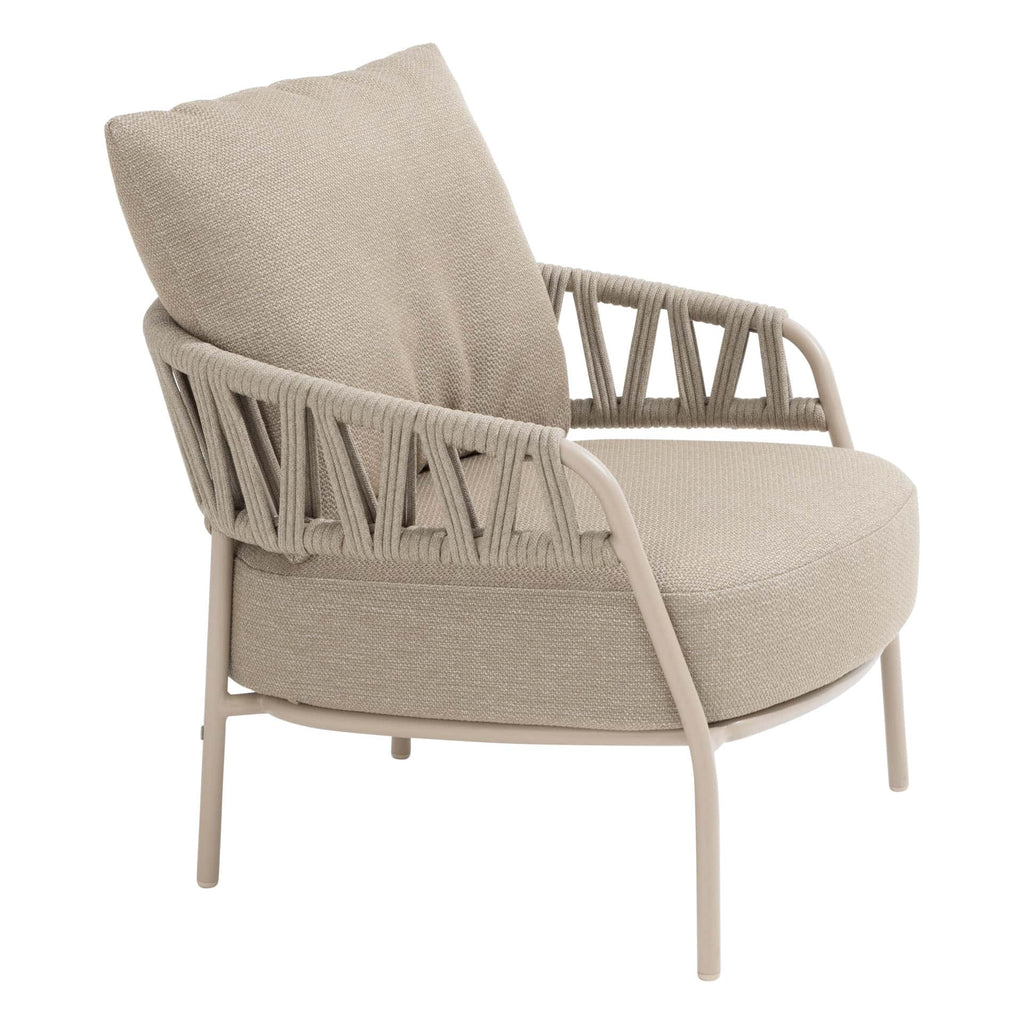 Transformeer je buitenruimte met de stijlvolle Calma lounge stoel van Taste 4SO, uitgevoerd in de warme kleur Latte. Het lichte aluminium frame is elegant afgewerkt met een latte poedercoating en gecombineerd met handgevlochten rope dat een luchtige, moderne uitstraling geeft. Dankzij de hoogwaardige materialen is deze lounge stoel ontworpen om te blijven schitteren, seizoen na seizoen. Het gepoedercoat aluminium frame is lichtgewicht, sterk en bestand tegen allerlei weersinvloeden. Perfect te combineren met de Calma 3-zits bank.