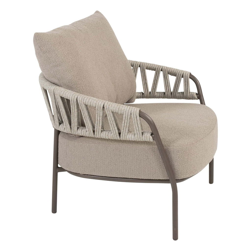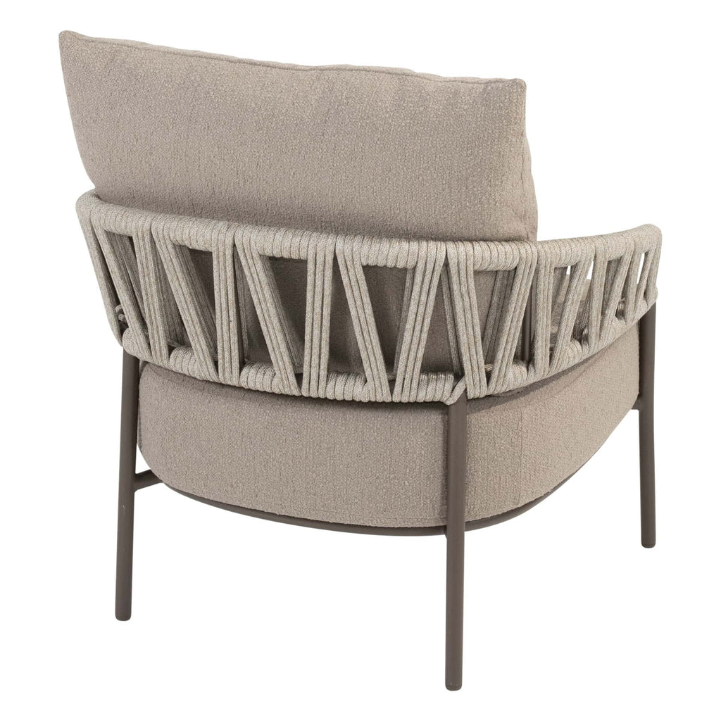 Elegant ontwerp: Aluminium frame in de kleur Terre gecombineerd met handgevlochten Taupe rope, stijlvol, warm en uitnodigend.
