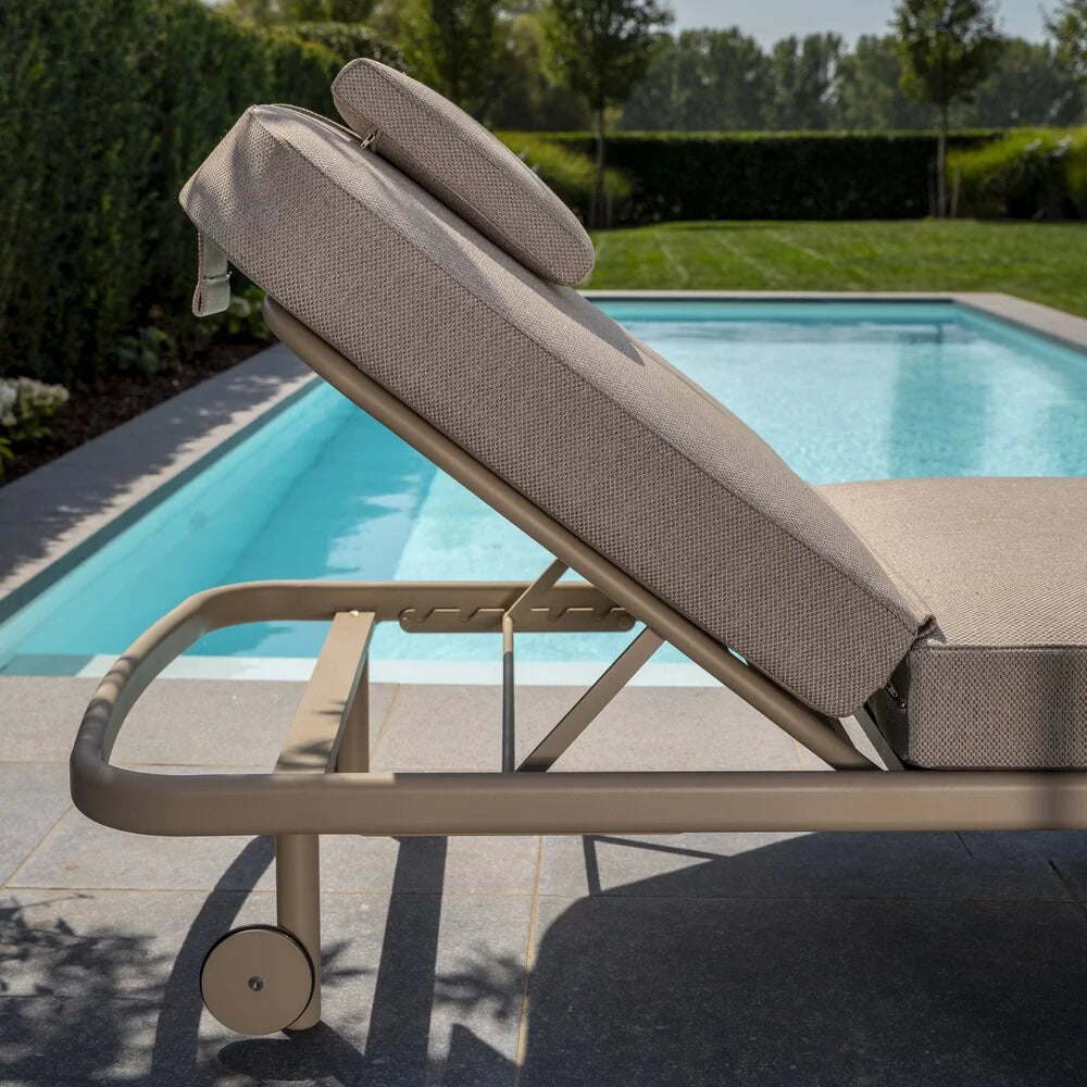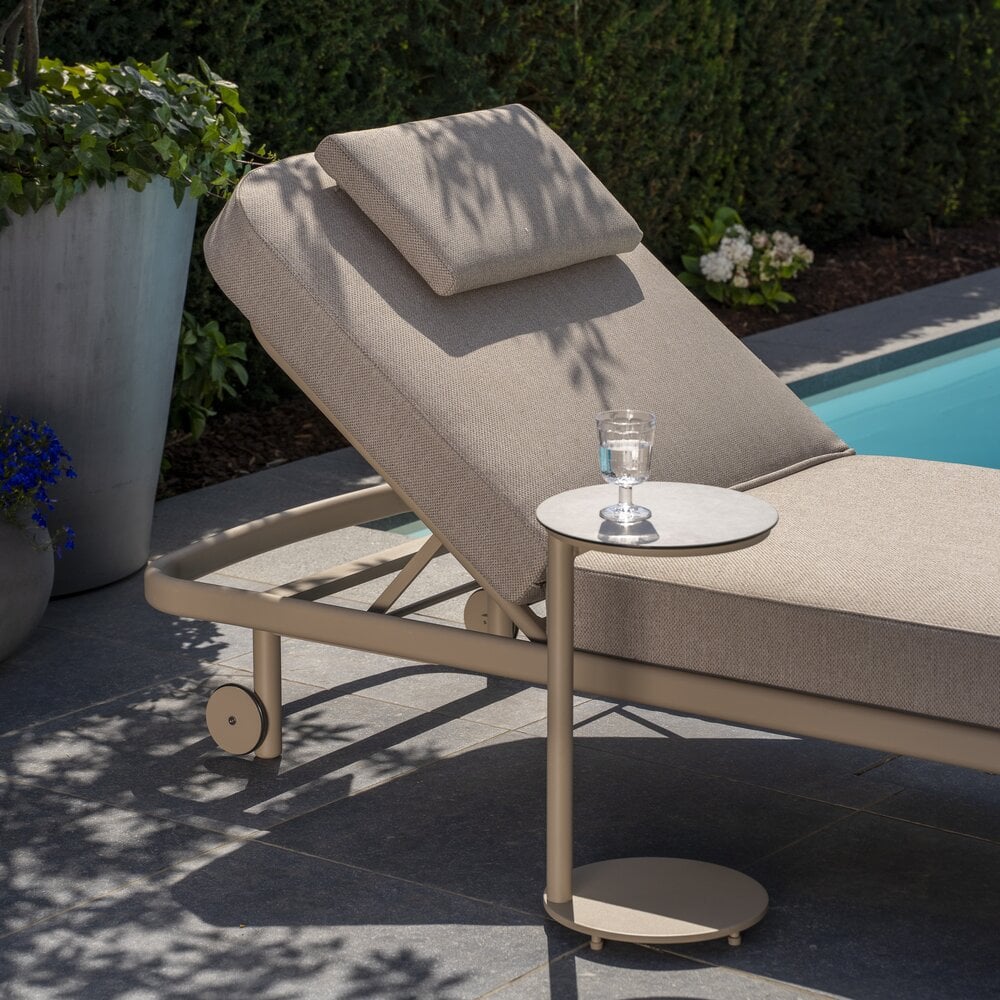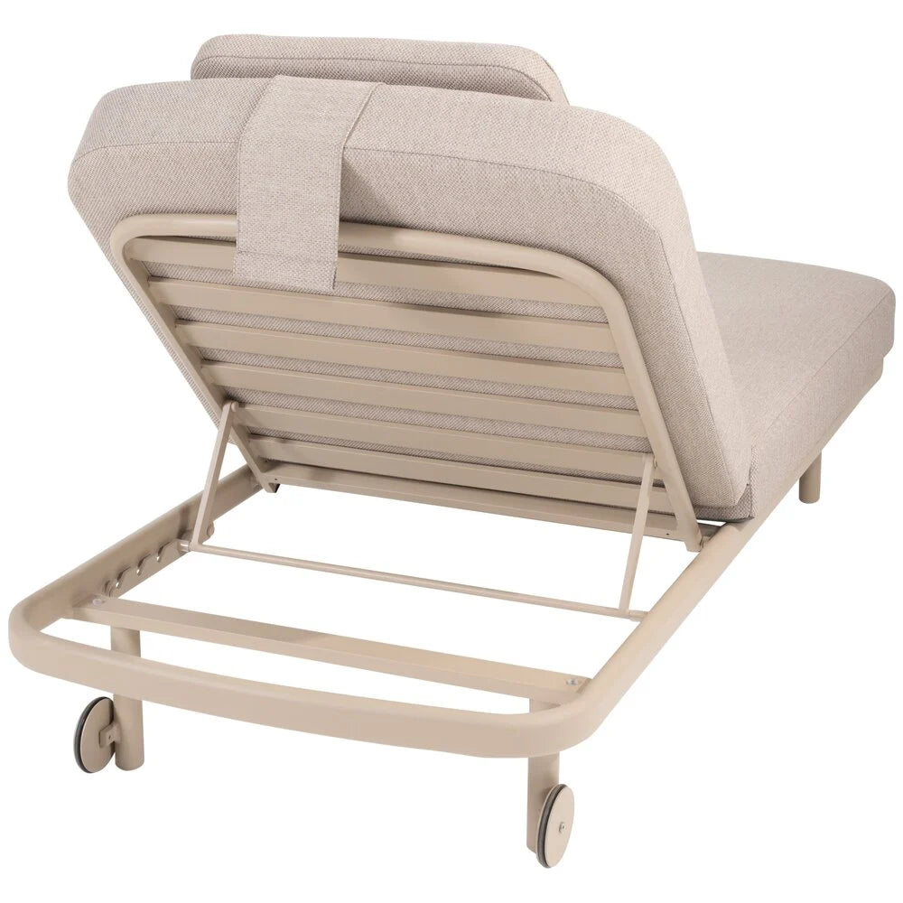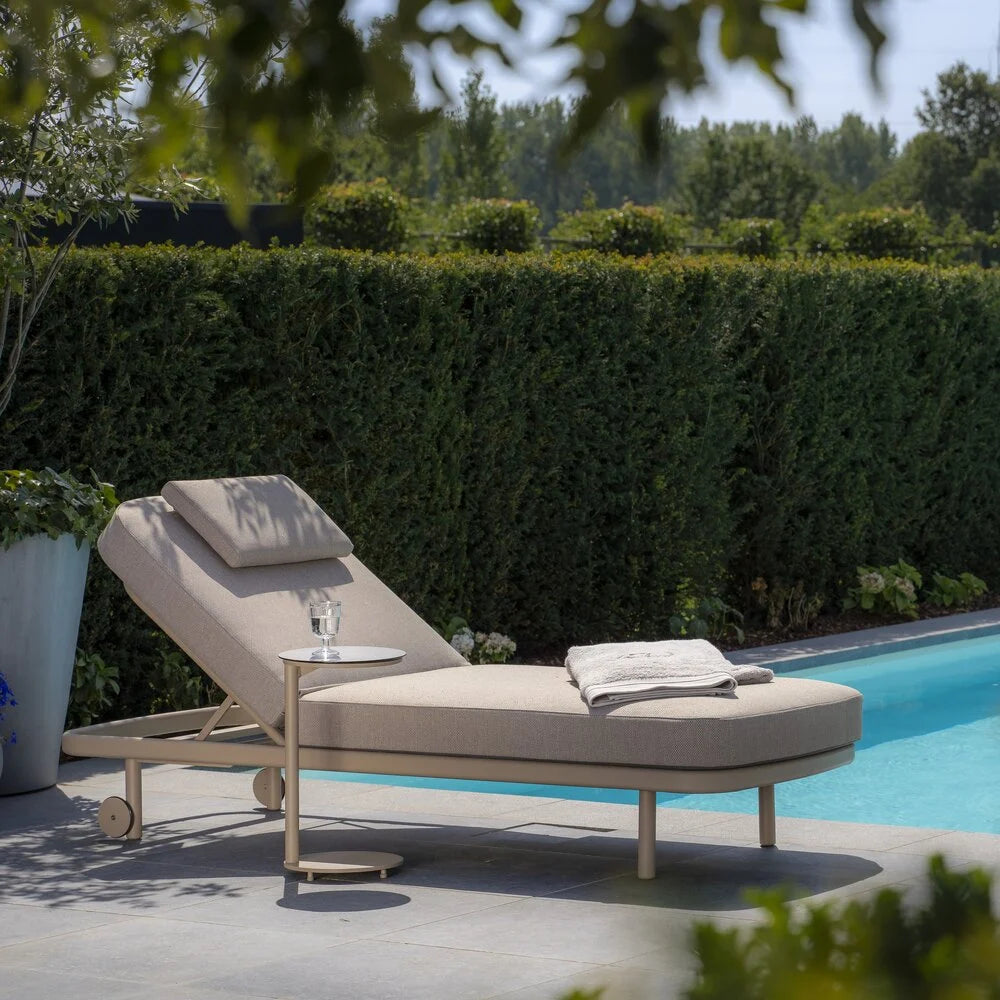 Ontspan in stijl met het Milano ligbed van Taste 4SO. Het gepoedercoate aluminium frame in de warme kleur Latte geeft de buitenruimte direct een moderne en verfijnde uitstraling. Dankzij de duurzame constructie en slimme details is dit ligbed perfect voor jarenlang buitengebruik.