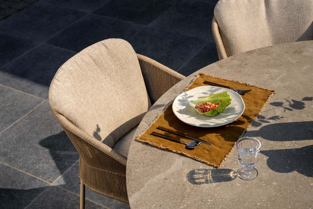 Het hoogwaardige ceramic tafelblad is niet alleen prachtig om te zien, maar ook uitzonderlijk onderhoudsvriendelijk, krasvast, hittebestendig en volledig weerbestendig. Perfect voor dagelijks gebruik in de tuin, zonder zorgen.