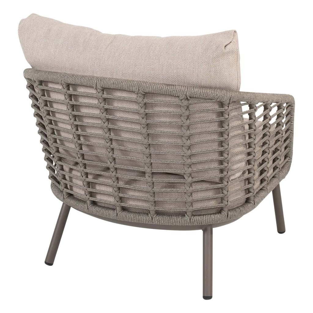Weerbestendige materialen: Gepoedercoat aluminium, hoogwaardig rope en all-weather kussenhoezen, bestand tegen zon, regen en temperatuurschommelingen.
