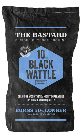 The Bastard Black Wattle houtskool is een zorgvuldig samengestelde selectie van 100% houtskool, bestaande uit grote en middelgrote stukken snelgroeiend acaciahout uit Zuid-Afrika. Dit hout garandeert een lange brandduur, hoge temperaturen en een delicaat aroma.