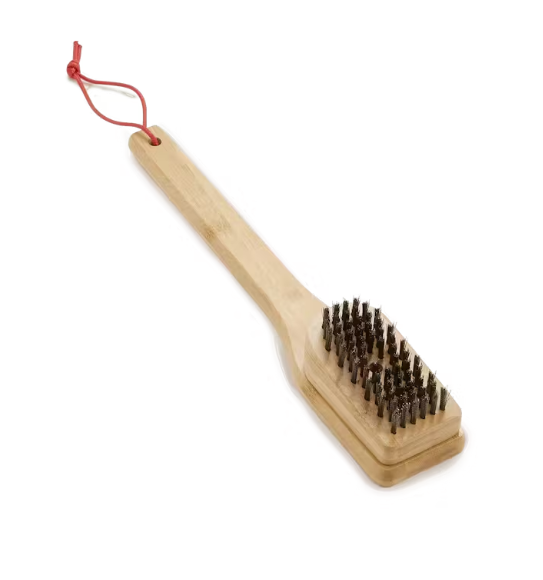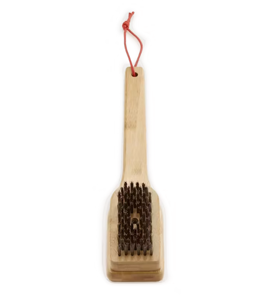 Krijg de beste barbecueresultaten en begin met het schoonmaken van de grillroosters. De bamboe reinigingsborstel is ontworpen om aangebakken voedsel, vet en vuil gemakkelijk en efficiënt te verwijderen vanaf roosters van elke grootte. Met de schuin geplaatste borstelkop borstel je eenvoudig vastgekoekte voedselresten weg zonder zelf te dicht bij de hitte te komen. Gebruik deze reinigingsborstel om je grillroosters vóór elk gebruik schoon te maken zodat je volgende maaltijd net zo heerlijk is als de vorige.